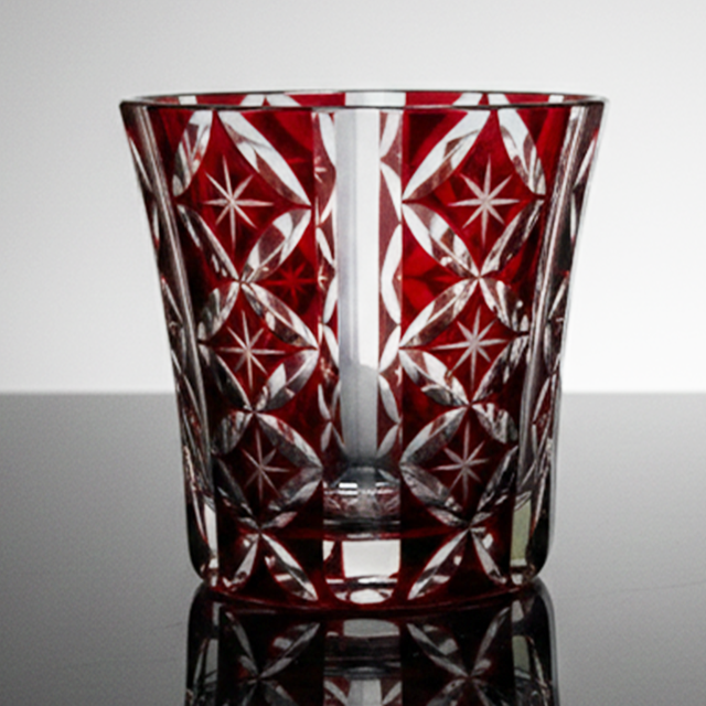 切子グラス 日本製 色被せ(L・赤)